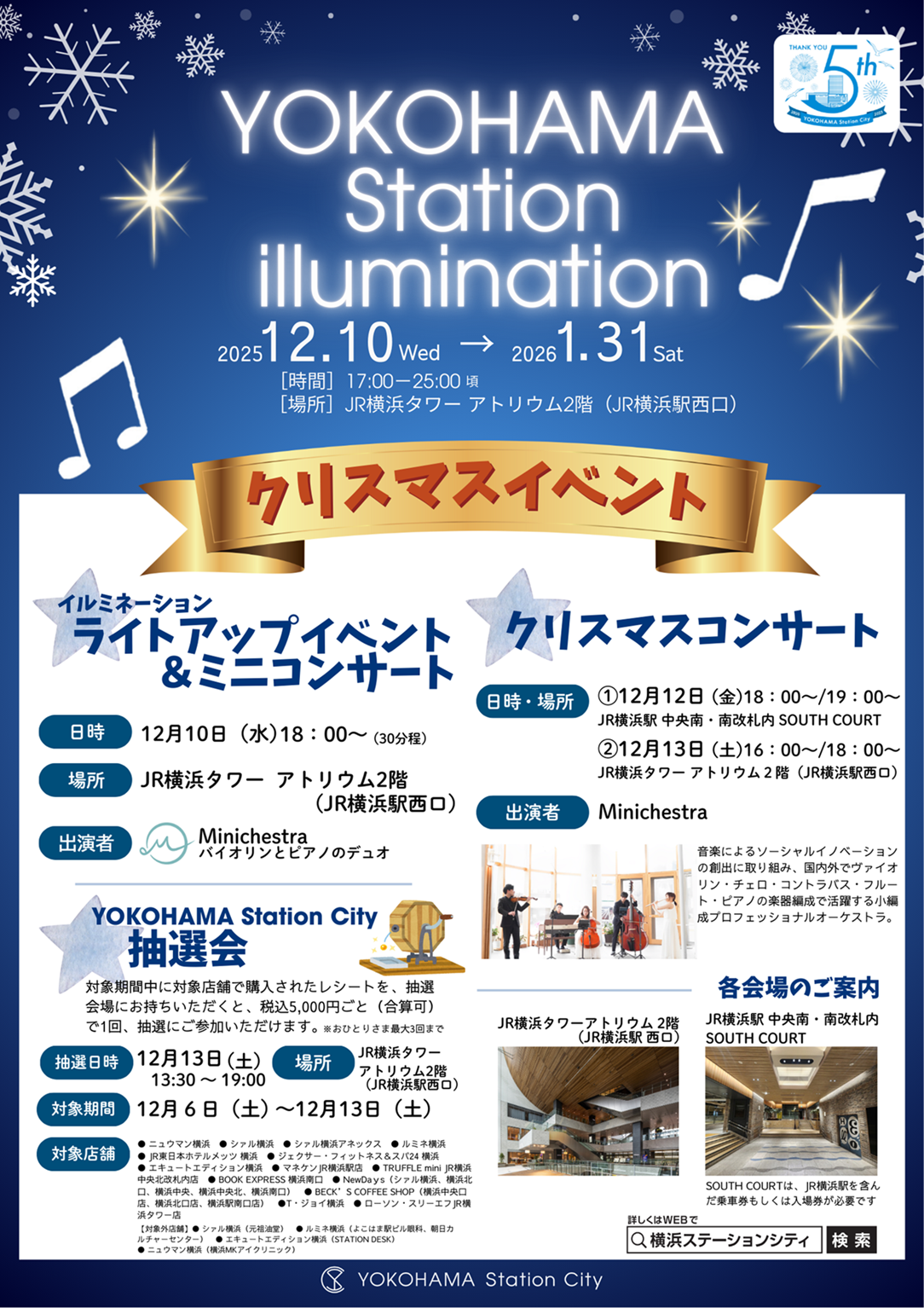 2025年12月10日(水)よりJR横浜タワー アトリウム2階(JR横浜駅西口)にて、「YOKOHAMA Station Illumination」がスタートいたします。
